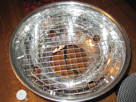 | Lower grate in the bottom half with tea lights, a proposed initial fuel source. |