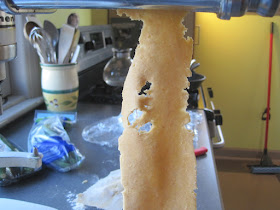 Here's what happens sometimes after a pass through the rollers. This gets folded and rerolled and eventually it comes out acceptable.
