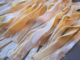After my sheets rested and dried out a little, I trimmed them using only a pizza cutter. I like the wide uneven noodles.