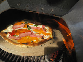 I tried out a super duper thin crust pizza.  My usual 10" diameter pizza is made from a 200-225 g crust, in this case only 150 g.  I had to increase the fat content to keep it tender while in my Firedome.  Still might try playing with more dough preps, I really like California Pizza Kitchen's pies.  Trish likes it, but I still like a little thicker crust.