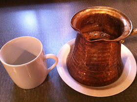 I always seem to forget how nice a Turkish coffee is, sweetened and brewed with a couple cardomom pods.  I got the ibrik last year while in the North End of Boston.  This is an easy coffee to make, try Lavash's sometime for a great example of what it should taste like.