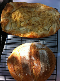 At the end of the last school year, I added a four bread delivery to the silent auction.  My last delivery of a "spent grain whole wheat boule" was so late, I tossed in an apple tart.  The recipients were tickled.