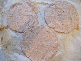 Score the discs with a pizza cutter and place the parchment and glop onto a sheet pan and bake at 350 about 30 minutes - there's a lot of water in this mush, that's why the long bake time.