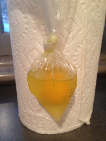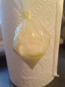 A 1 gal food storage bag was lightly oiled on the inside corner, an egg cracked into it and the bag was tied off leaving an air gap (oops).