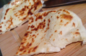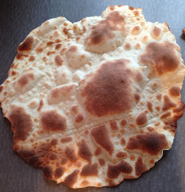 I've posted on this type of flatbread a million times - I love them because they're tasty and fast to make, no need to warm up the refrigerated dough. I've done them on the stove top, and again on the stove top, and baked them in a ridiculous oven I made. Some I've started on the stove top and then tossed them in the broiler to finish. These methods aren't bad, but I wanted something better, better color and texture, faster bake on the outside to leave the middle super soft and tender.